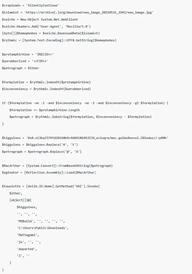 TAG-144’ün en gelişmiş tekniklerinden biri, Archive[.]org’da barındırılan iyi huylu bir JPEG görüntüsünün piksel verilerinin içine Base64 kodlu bir .NET derlemesinin yerleştirilmesini içerir.